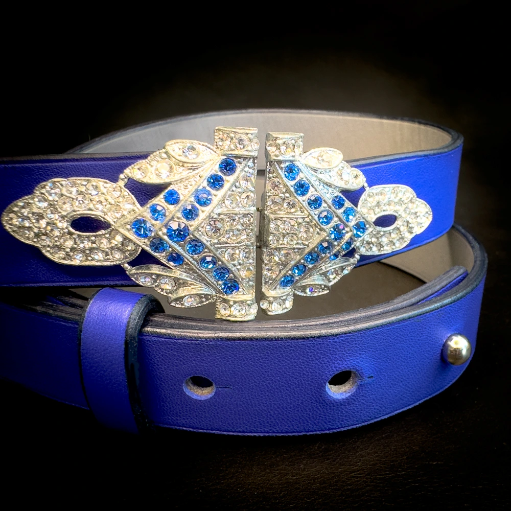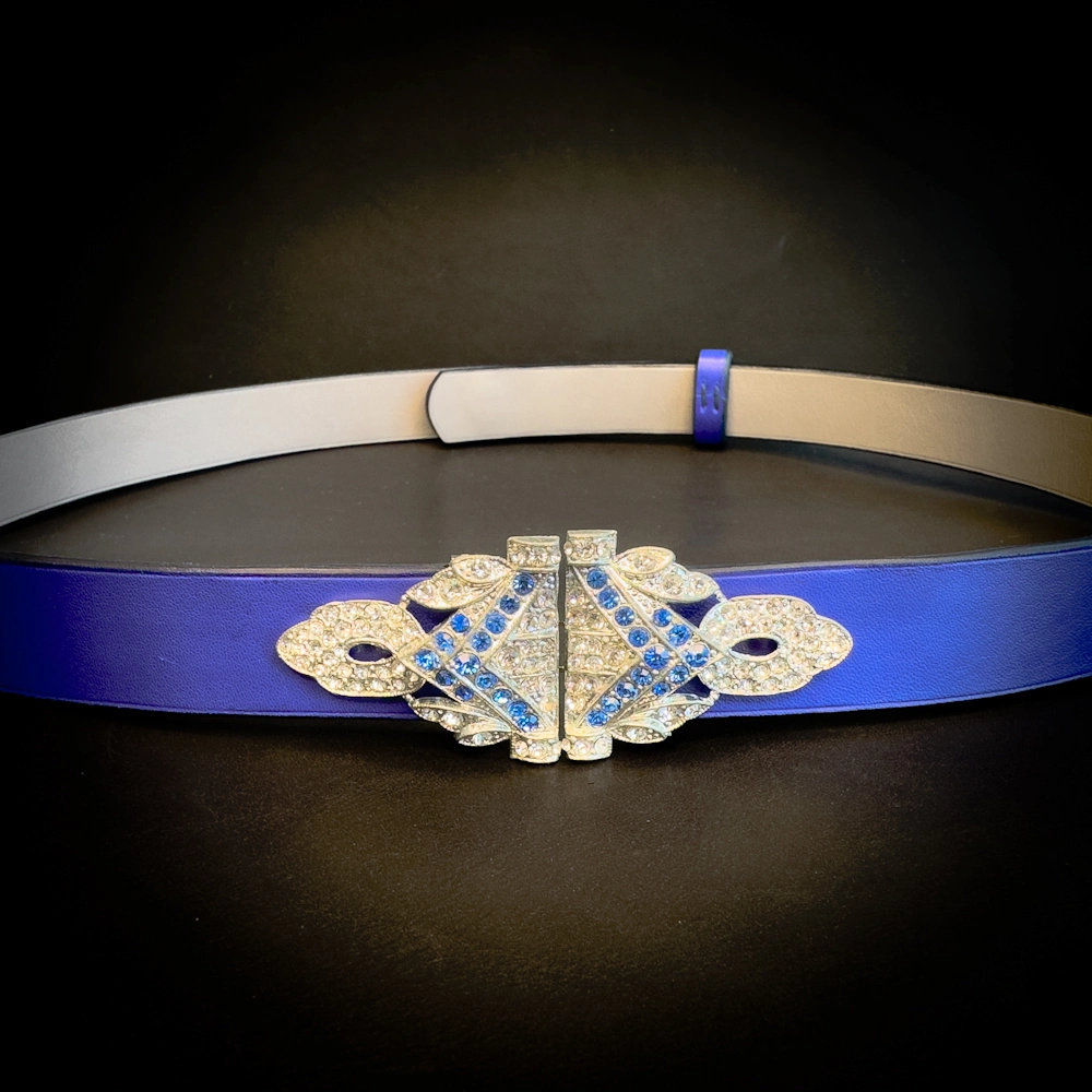 – Veau lisse bleu électrique & boucle ancienne Art Déco