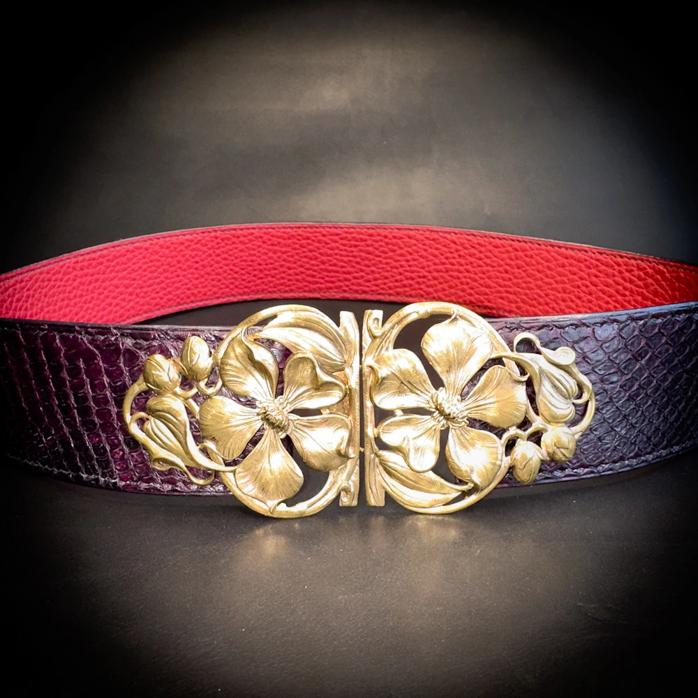 Chaque ceinture est façonnée avec soin, selon les techniques traditionnelles de la Maroquinerie d’Art.