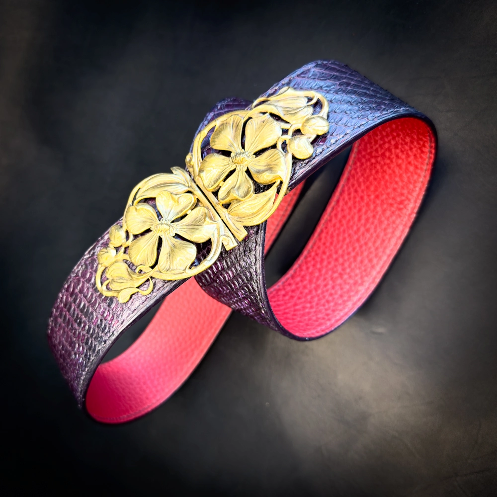 – Python violet & boucle ancienne Art Nouveau en laiton