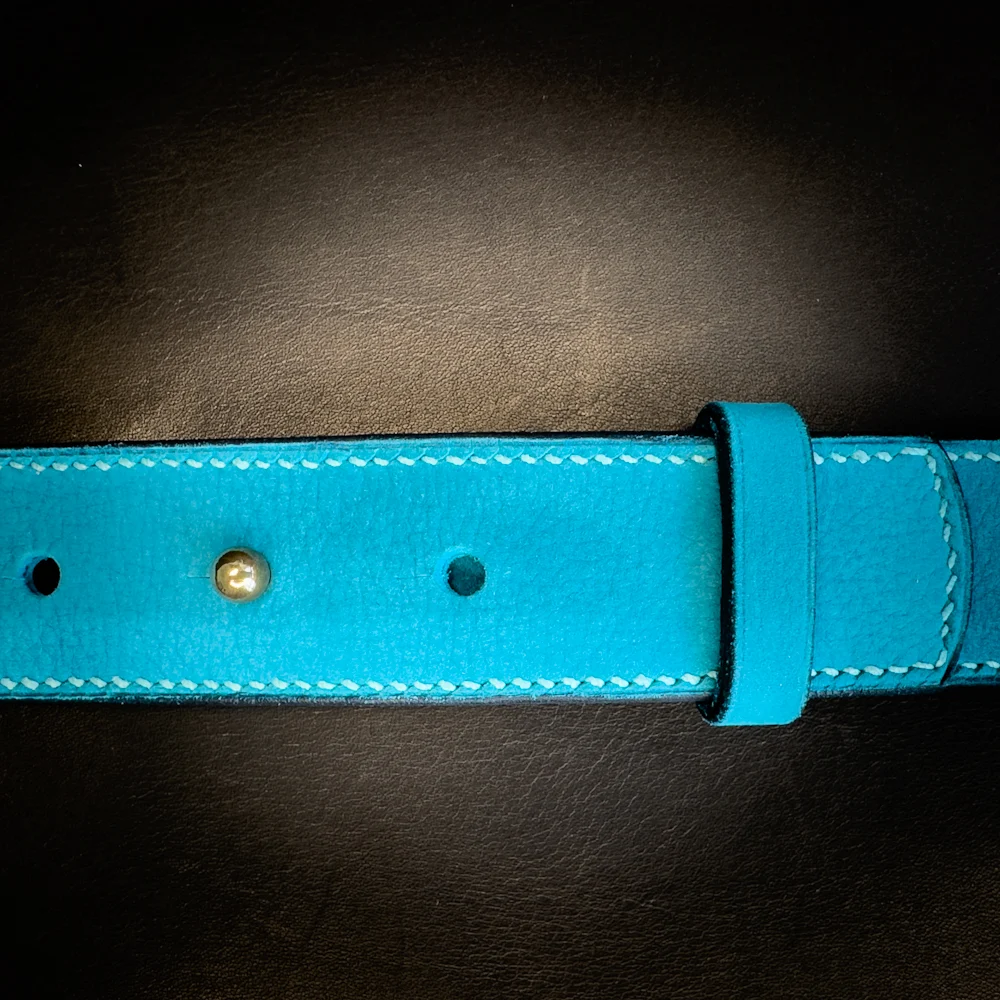 Chaque ceinture est façonnée avec soin, selon les techniques traditionnelles de la Maroquinerie d’Art.